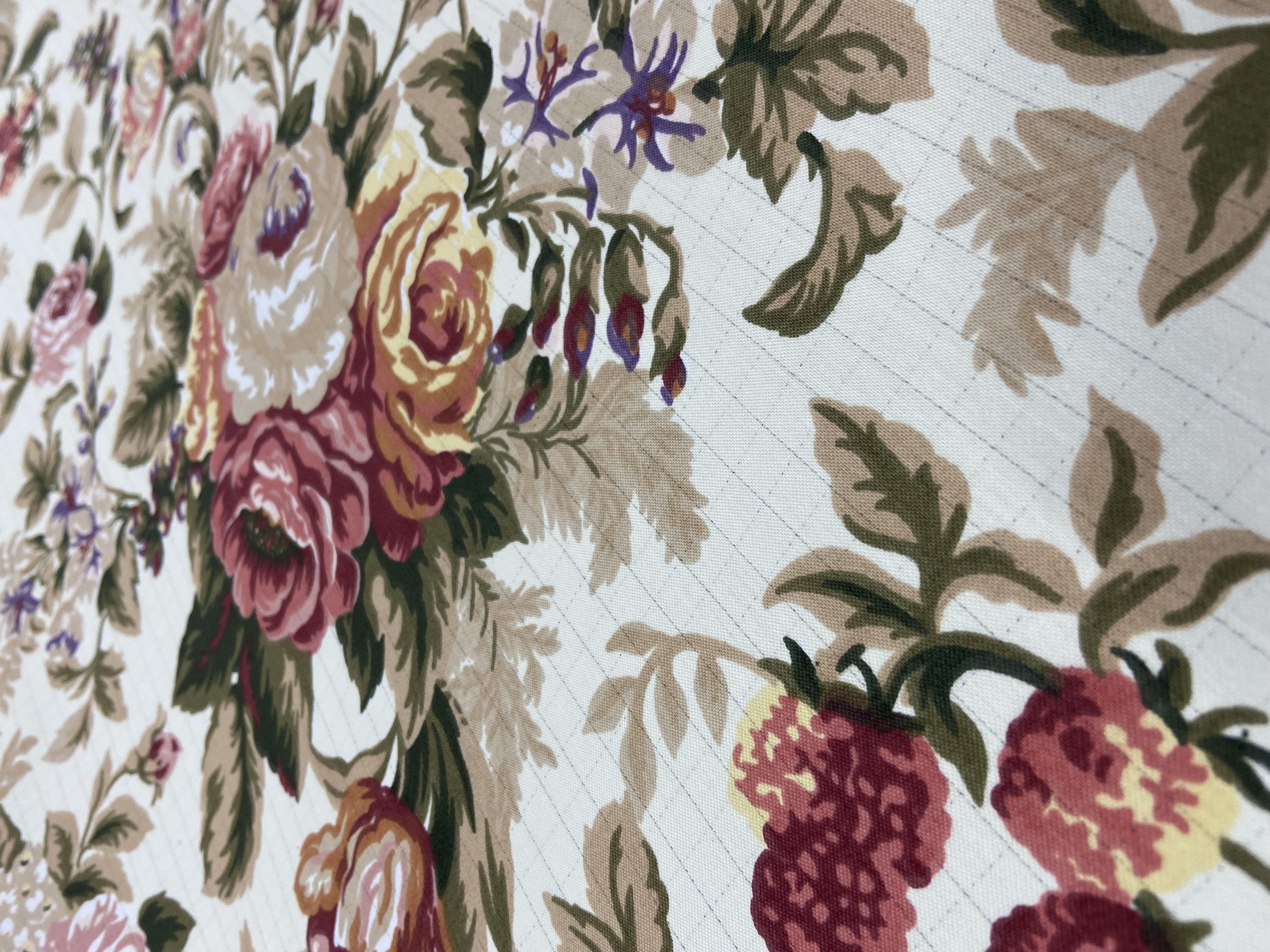 Przedmiotem sprzedaży jest wytrzymała tkanina ogrodowa / hamakowa w piękny, klasyczny wzór kwiatowy inspirowany tradycyjnymi kompozycjami florystycznymi. Bogate bukiety róż, malin i drobnych kwiatów na jasnym tle tworzą elegancki, ponadczasowy design, który doskonale sprawdzi się w ogrodzie, na tarasie czy balkonie.