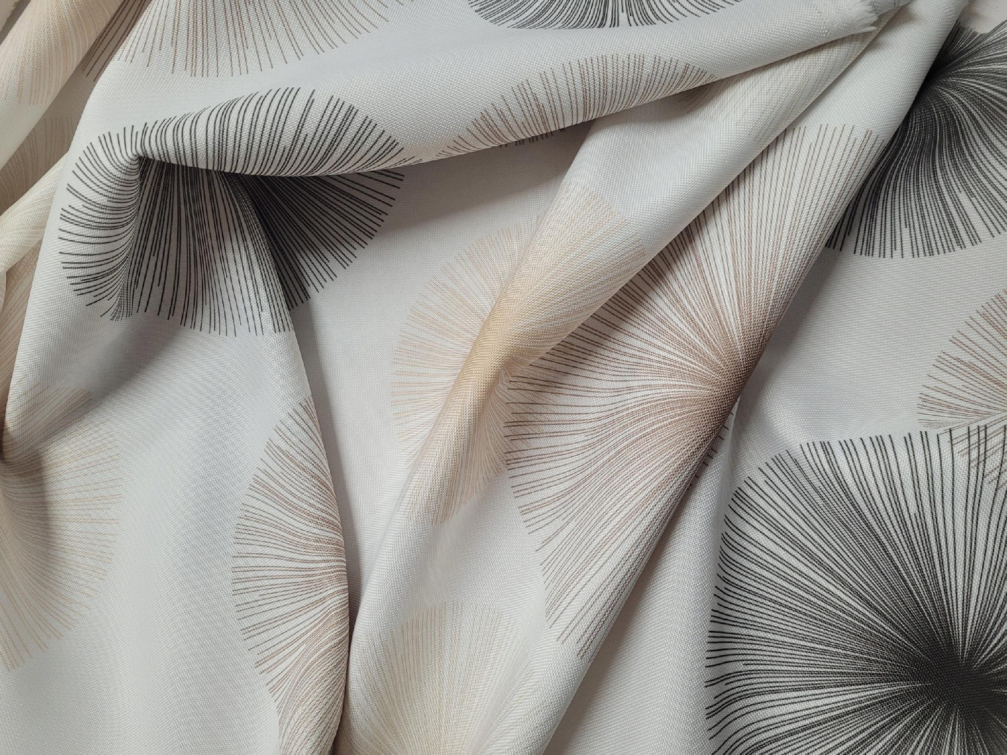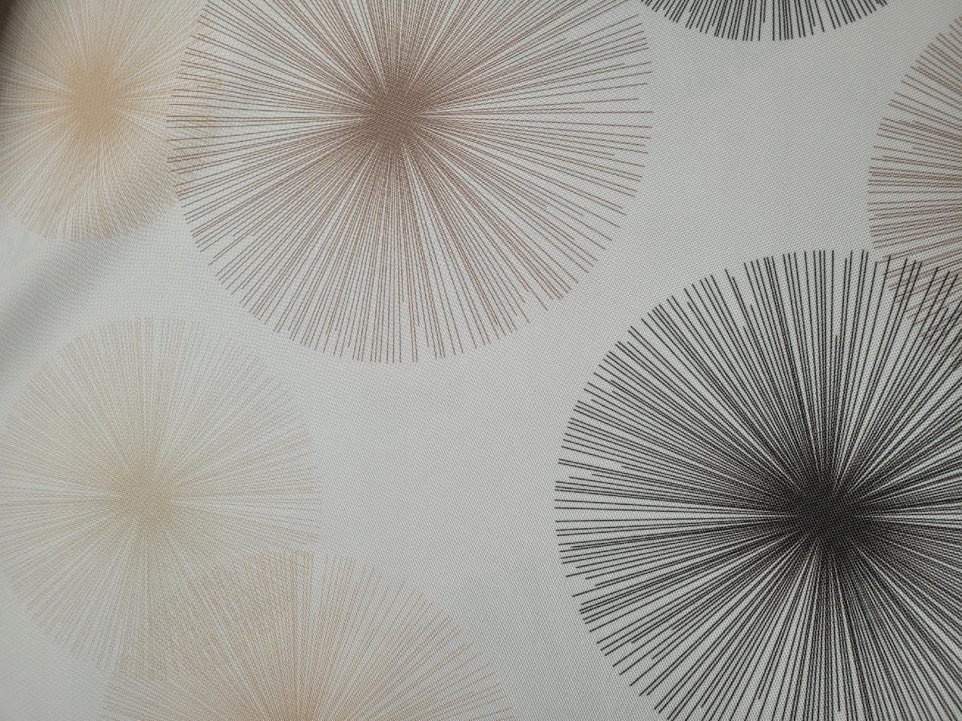 Wyjątkowa tkanina typu oxford o gramaturze 210 g/m² z efektownym motywem dużych, stylizowanych dmuchawców. Subtelne przejścia kolorystyczne w odcieniach beżu i grafitu pięknie kontrastują z kremowo–jasnobeżowym tłem, tworząc harmonijną i niezwykle elegancką kompozycję.